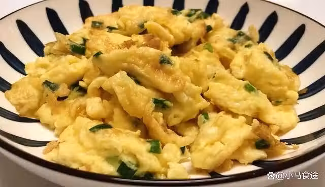 2.起鍋燒油,稍微來一點點豬油,五成油溫下入蛋液,炒熟即可出鍋裝盤。