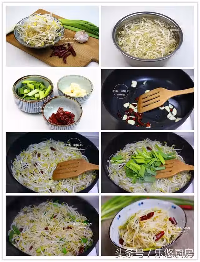 第六步:把青蒜苗放入鍋中煸炒30秒。