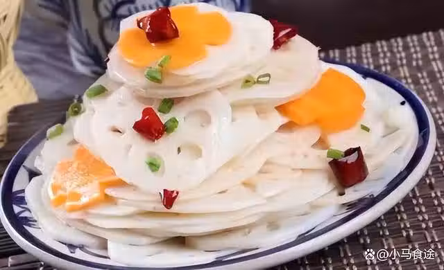 1.脆藕洗凈切成均勻的薄片,下入開水鍋迅速焯熟,撈出迅速過涼水,控水備用。