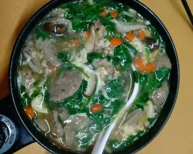 胡蘿卜半根;鮮蘑菇一把抓;雞蛋一個;香菜一大把!;瘦肉看你想吃多少;牛肉丸可有可無;紫林醋看著倒;生抽Alittle;胡椒粉靈魂選手必須有!;鹽個人口味添加