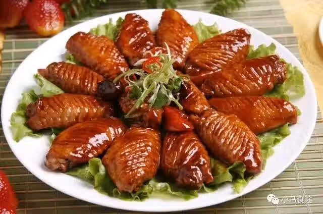 2. 炒鍋置旺火上,放化豬油燒至六成油溫時,放入雞翅過油,再放入鍋內,摻鮮湯、加鹽、料酒、姜、蔥、糖色、燒沸後撇去浮沫,移至小火直至雞翅燒熟,加入冬筍、香菇,繼續燒至雞翅熟透後,揀去姜蔥,用中火將湯汁收稠,加味精、香油推勻,起鍋裝盤即成。