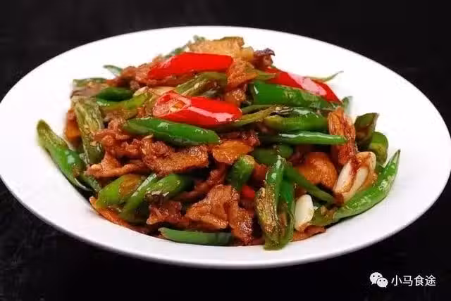 3.鍋里再加入少許菜籽油,下入略肥一點肉片炒出油脂,下入蔥姜、拍蒜、豆豉沫炒出香味,加入辣妹子醬,沒有的話可以用豆瓣醬代替,炒出紅油,下入瘦一點的肉片,淋入少許的香醋,炒至肉片變色,加入料酒去腥,老抽上色,生抽提鮮,下入辣椒,胡椒粉少許、鹽少許、雞精、味精各少許,翻炒均勻,最後增香小秘訣,噴入鍋邊醋,保持辣椒的脆性和軟化肉質纖維,出鍋裝盤即可。這款辣椒炒肉不管是拌飯、拌面、夾饃都特別香韌。越吃越香,完全不會膩口。