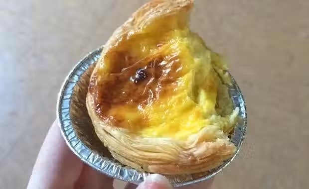 倒入蛋撻皮七八分滿即可(這次買的蛋撻皮都廢了,,,完全變形)