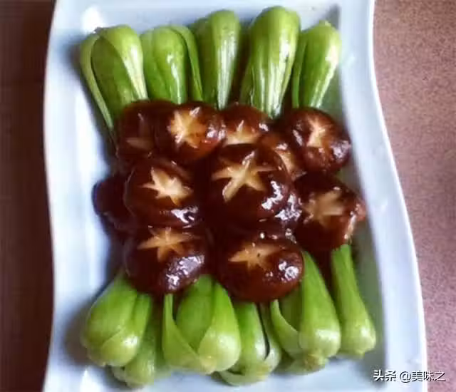 鮮香菇150克、上海青300克、鮑汁2勺、鹽適量、蒜蓉適量。