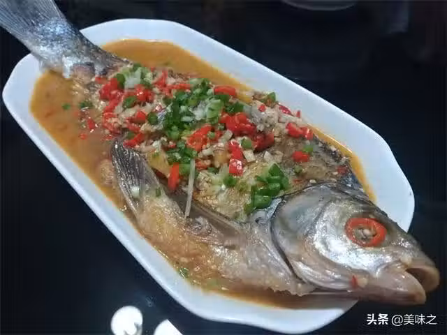 鯿魚1條、紅辣椒6個、大蒜5顆、姜5塊、植物油5g、鹽5g、生抽1勺、老抽適量、香醋適量、料酒1勺、蒸魚豉油1勺。