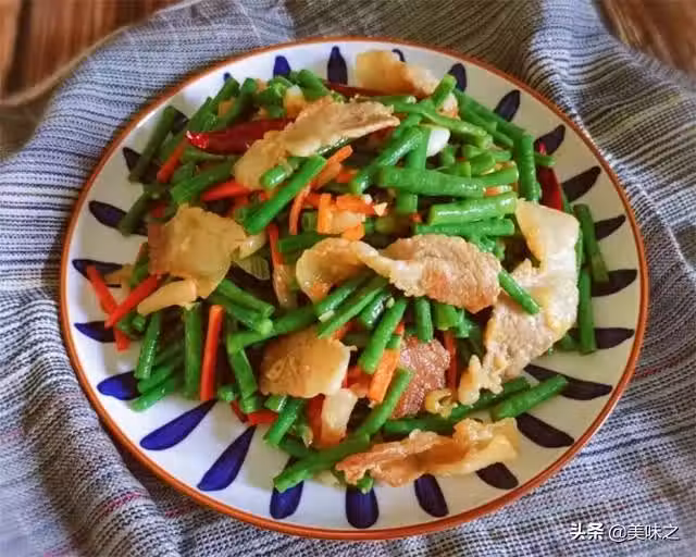 6、下入豇豆胡蘿蔔煸炒,加入精鹽,一品鮮醬油。