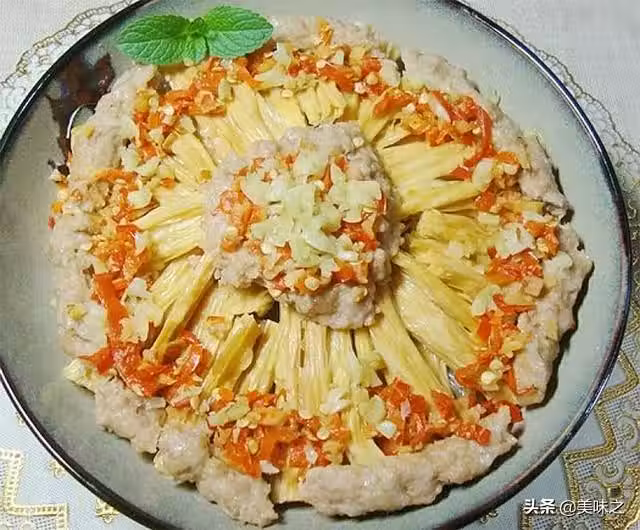 肉末適量、腐竹適量、粉絲適量、味極鮮醬油適量、濃醇高湯1支、剁椒2勺、調味汁適量、蒜末適量、水適量、胡椒粉少許、鹽少許、香油少許。