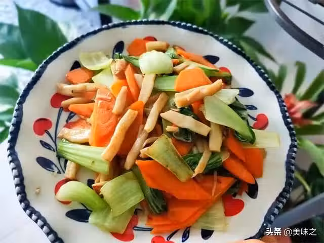 胡蘿蔔適量、油菜適量、白玉菇適量、鹽適量、食用油適量、蚝油適量。