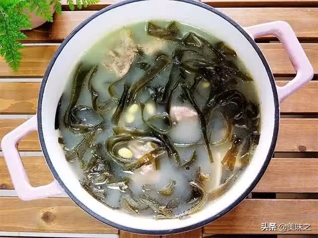 4、30分後放入海帶絲,再放幾片姜,繼續熬煮。