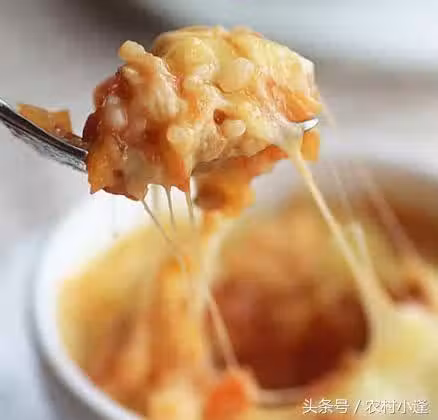 3新鮮的米飯盛入碗中,上面鋪一層炒好的番茄肉醬;將馬蘇里拉乳酪均勻的撒在醬汁上;入烤箱200度,中層,上下火烤制10-15分鐘,乳酪表面金黃即可。