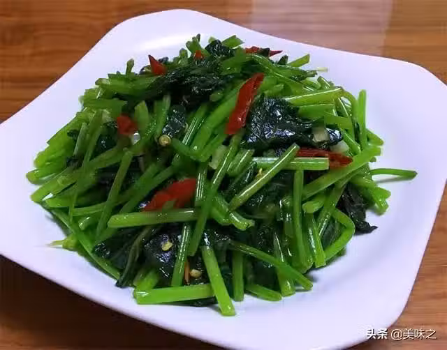紅薯葉適量、蒜適量、干辣椒適量、鹽適量、雞精適量。