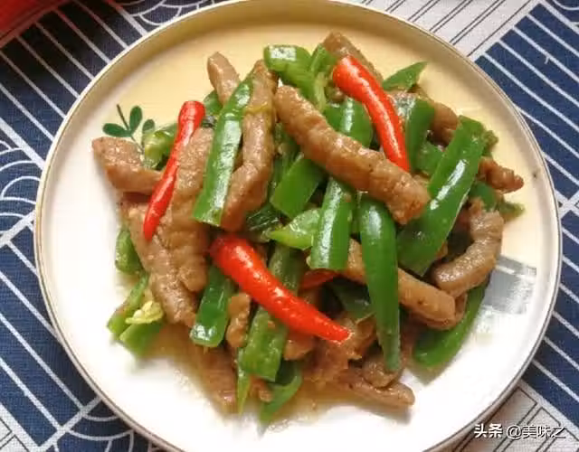 黑椒牛柳適量、螺絲椒2個、小米椒2個、玉米油適量、蔥適量、鹽適量、雞精適量、姜適量。