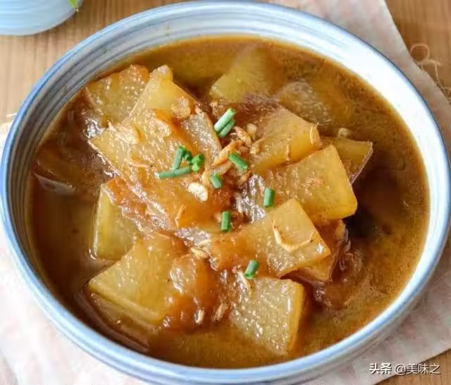 冬瓜500克、蝦皮少許、蚝油1勺、白糖少許、生抽1勺、老抽半勺。