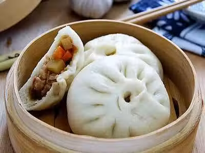 麵粉300克、酵母6克、水160毫升、豬肉300克、土豆1-2個、胡蘿卜1跟、烤肉醬(醬香型)3大勺(或者豆豉醬,豆瓣醬之類,只要自己和家人喜歡的口味就好)、蔥薑末適量、鹽適量、醬油適量、雞精適量、色拉油適量
