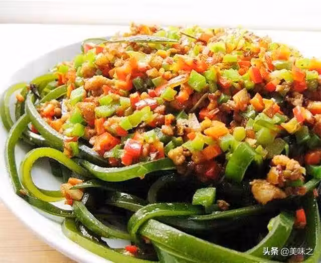 5、放入海帶絲,翻炒2分鐘。