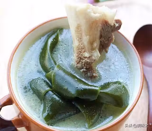 6、煲至海帶滑爛,調上適量的鹽和味精即可。