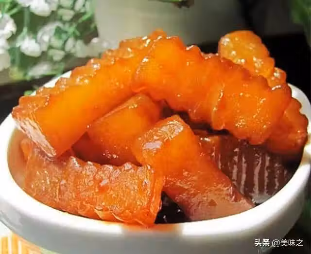 6、燒制蘿蔔變透明,再加入少許鹽調味。