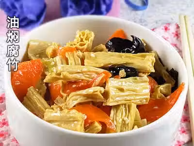 材料:腐竹 200 克,水發木耳 50 克,胡蘿蔔 50 克