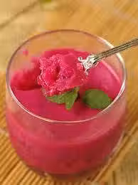 6)倒入步驟4里做好的的火龍果汁,入冰箱冷藏至凝固即可
