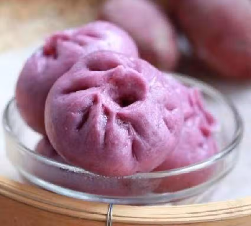 將之前多餘的用來和面的紫薯泥,包入包子中,每個大概包30-50克左右