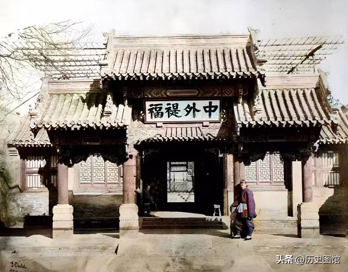 總理衙門成立於1861年,門前的牌樓非常氣派,題額「中外禔福」四個大字十分醒目。照片拍攝於1878年(攝影/托馬斯·查爾德)。