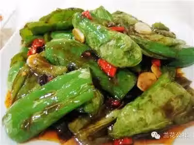 3)炒鍋燒乾水份,將青椒放下鍋內慢火煸至起皮。