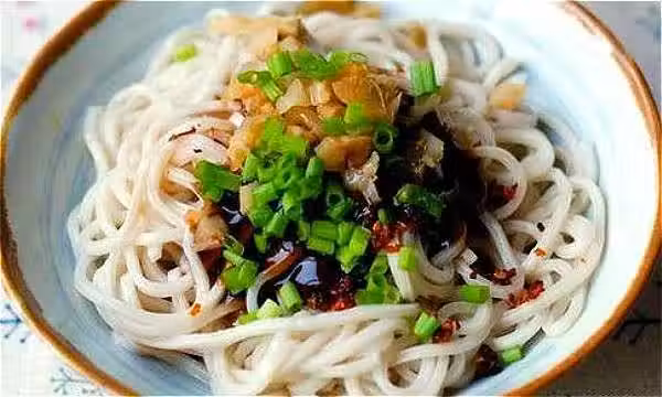 鍋中添燒開後,下入麵條,煮好後,撈起,干挑盛放在碗中。所有調料除蚝油外混合,淋在麵條上,加上蚝油。 再將榨菜剁碎,小蔥切碎,撒在麵條表面即可。
