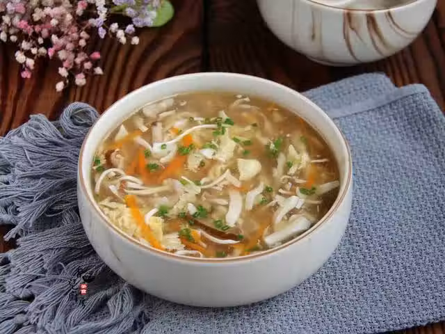 酸辣湯,上海人家家戶戶都會燒,各家都有自己的一碗湯,可謂是千家千碗。湯里的料也十分的多,豆腐和蛋花是標配,其它的可以依照不同的季節配上不同的食材,用香醋提酸,胡椒粉提鮮辣味。特別的香,完完全全就是小時候媽媽的味道!尤其是到了夏天,魚湯,肉湯不如來一碗酸辣湯,酸酸辣辣,開胃又好喝。