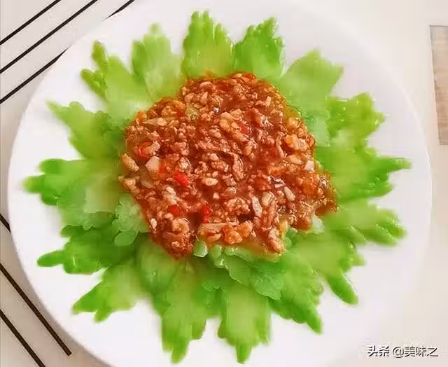 5、另起鍋燒油,油七成熱時,下豬肉末翻炒變色。