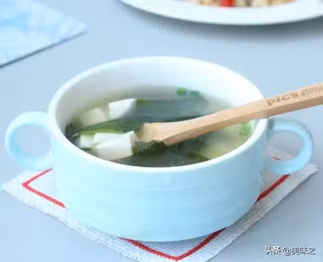 嫩豆腐一盒、海藻,海帶或裙帶菜適量、味增適量。