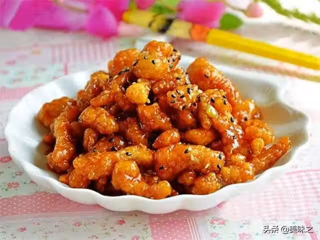 6、然後再次復炸一遍,肉條金黃撈出瀝油備用。