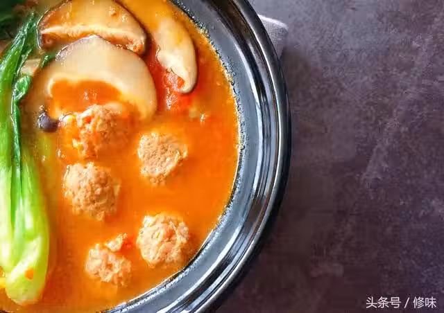 【番茄丸子湯】 主要食材:番茄、前腿肉、香菇
