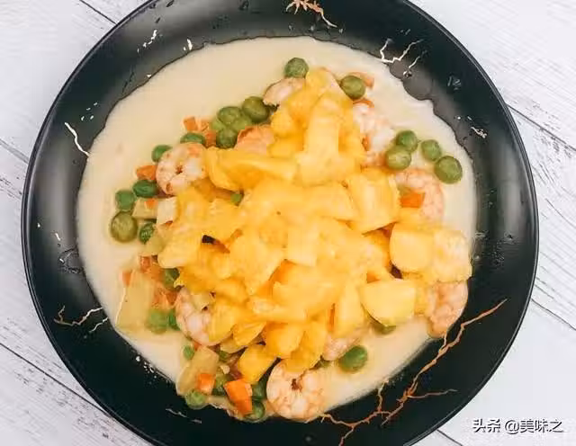 芒果1個、蝦仁200g、胡蘿蔔粒50g、豌豆50g、姜1塊、牛奶5ml、鹽少許、料酒少許、玉米油適量。