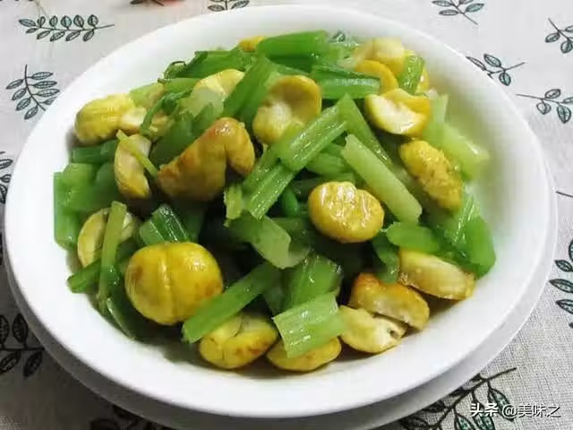 芹菜400克、栗子250克、鹽適量、味精適量。