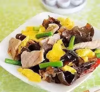 配料:木耳、黃瓜、豬肉、澱粉、料酒、鹽、油、雞蛋、醬油