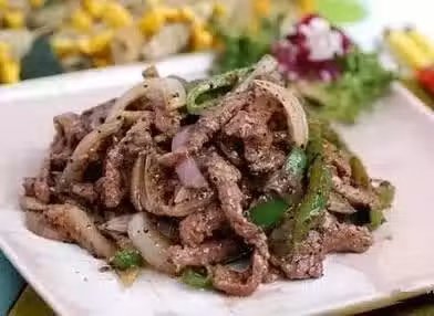 配料:牛肉、洋蔥、青椒、黑胡椒粉、醬油、鹽