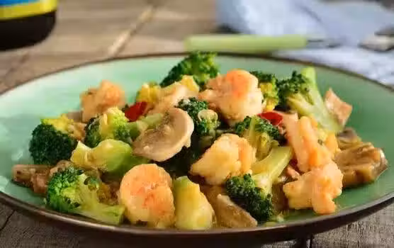 配料:西蘭花、蘑菇、蝦仁、鹽、雞精、油