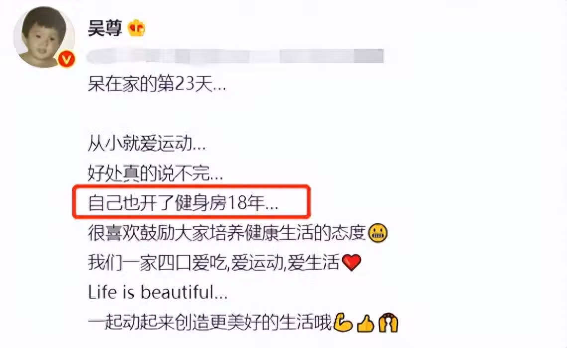 當然,開了健身館的吳尊不僅自己運動,也是拉著家人們一起鍛煉。因為已經一家人居家隔離的時候也不忘做著各種各樣的鍛煉,看來吳尊這個健身教練對家裡人也很嚴苛,但相信在他的訓練下,一家人也會有強壯的身體。