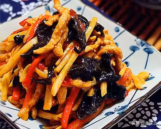 冬筍200克、豬裡脊肉300克、水發木耳60克、胡蘿蔔60克、蒜適量、剁辣椒適量。
