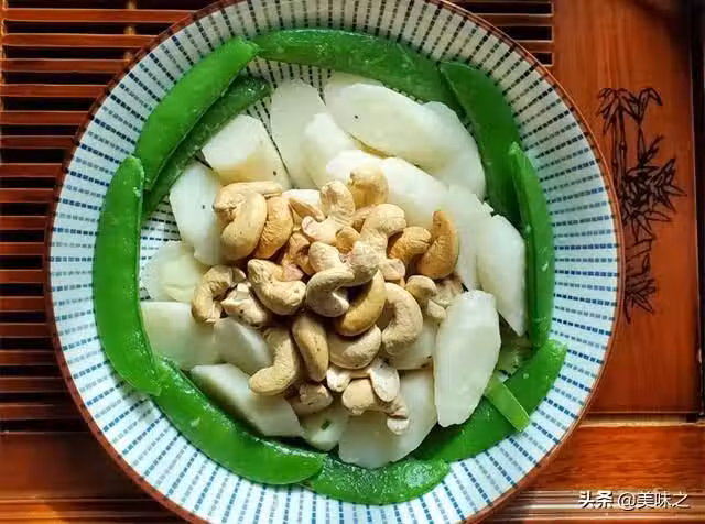 山藥400克、甜豆適量、腰果適量、鹽少許、油少許。