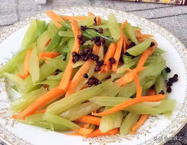 芹菜、油、鹽、芝麻油、花椒、胡蘿蔔。
