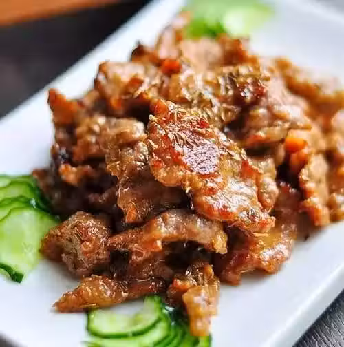 成份:牛肉250g,適量油,適量鹽,適量胡椒粉,少量醬油,適量澱粉,適量孜然芝麻籽。