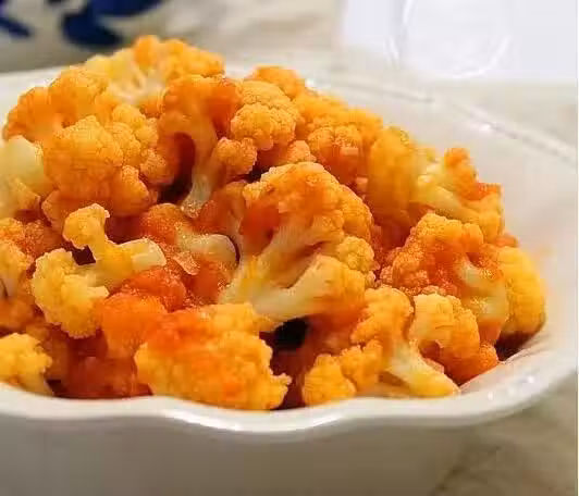 第四步:將菜花放入開水鍋中焯1分鐘,然後撈出備用。