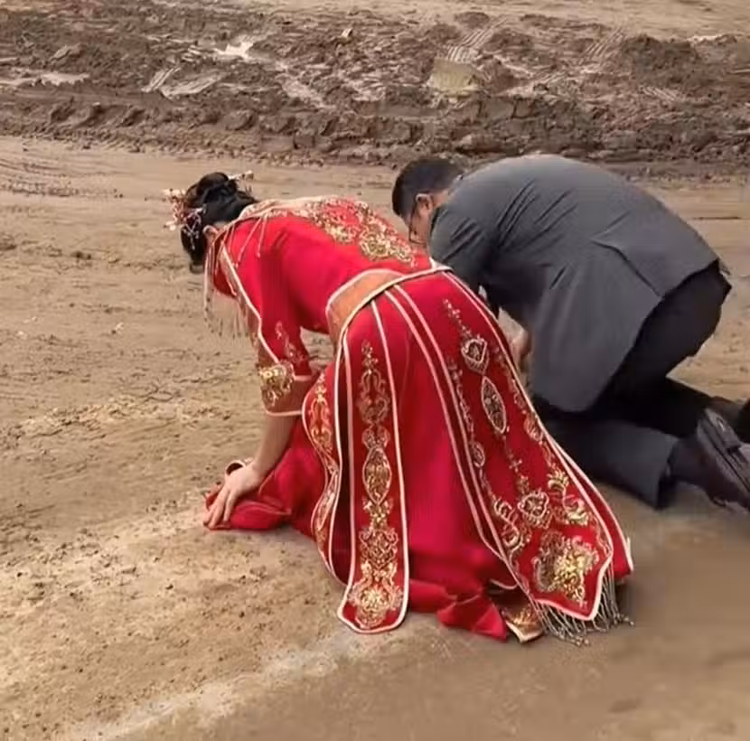 禮車開到一半!新娘突叫停「朝路邊行跪拜大禮」磕頭落淚 「背後真相超催淚」網卻酸:這樣不吉利