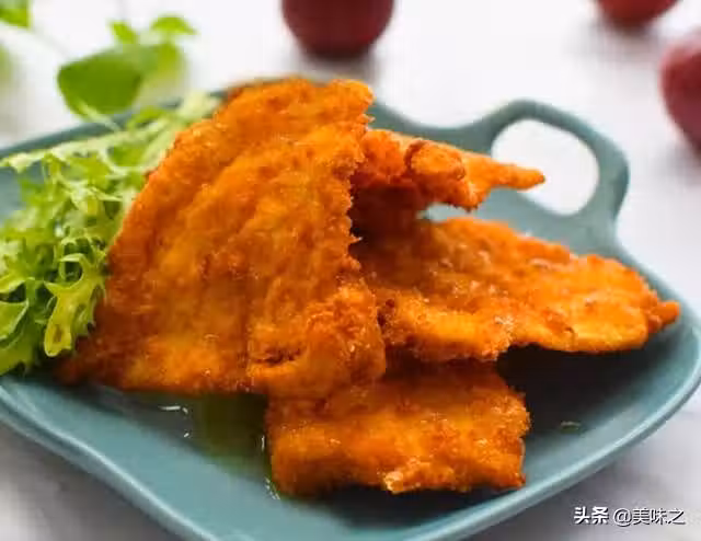 7、炸至金黃撈出,搭配自己喜歡的醬料就可以吃了。通常用蕃茄醬或者黑胡椒醬搭配炸肉排,也有用沙拉醬的,按自己的喜好來吧。