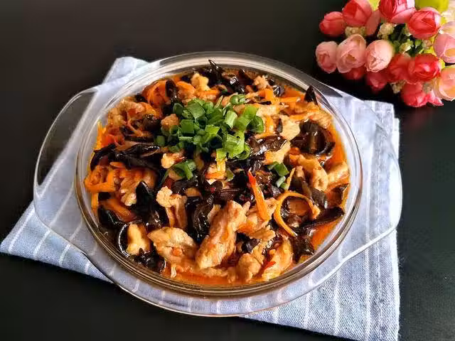 魚香肉絲是一道傳統名菜,主料為豬肉、黑木耳,輔料因人而異,成菜色紅潤、肉嫩、鮮香,非常不錯的下飯菜。