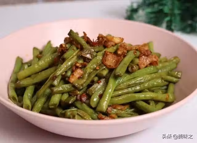 豆角500克、培根適量、大蒜幾個、蔥花一根、老乾媽辣椒醬一勺、玉米油10克、鹽1克、生抽少許。