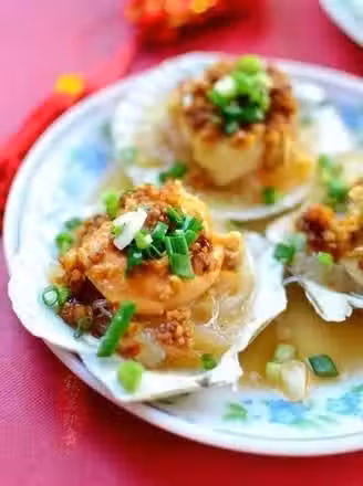 熱鍋熱水燒開,將扇貝放入,蒸5分鐘左右,取出,撒上香蔥末,然後取乾淨鍋燒熱油,淋在香蔥末上即可