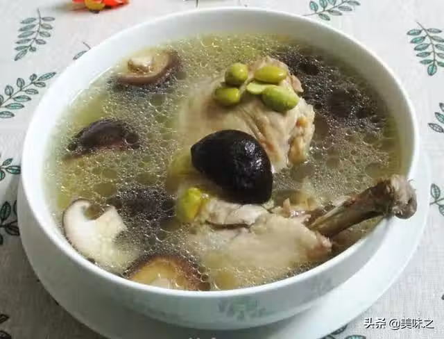 雞腿425克、新鮮香菇75克、毛豆255克、料酒適量、鹽適量。