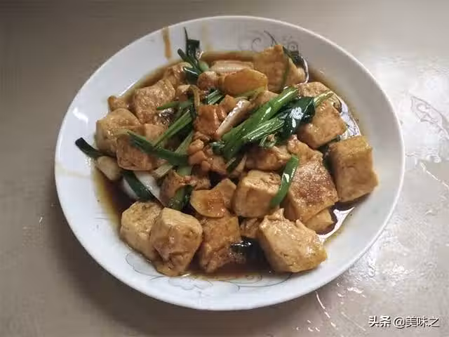 豆腐、花生油、小蔥、蒜瓣、白糖、醬油、蚝油、鹽。